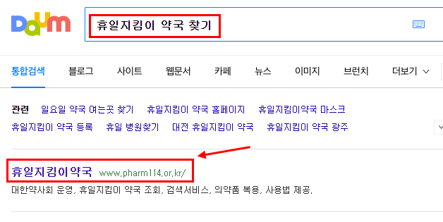 먼저 검색창에 "휴일지킴이 약국 찾기"를 검색합니다