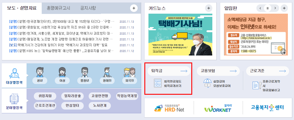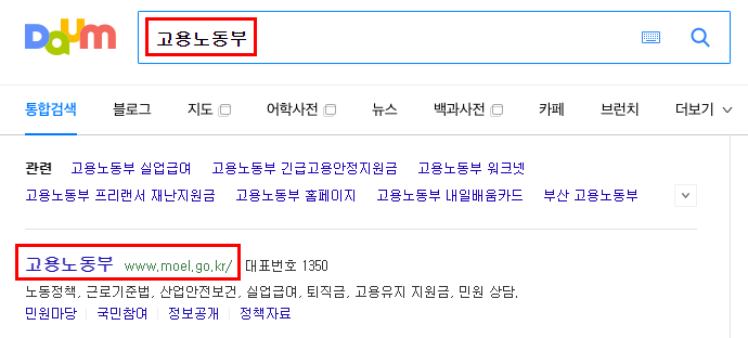 고용노동부 홈페이지에서 빨간 표시 부분을 클릭합니다