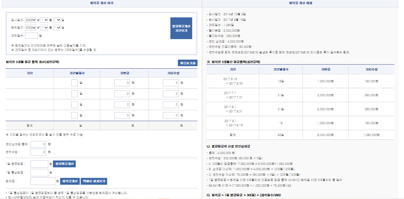 저는 간단한 게 편해서 간략히 퇴직금 계산기를 사용했습니다