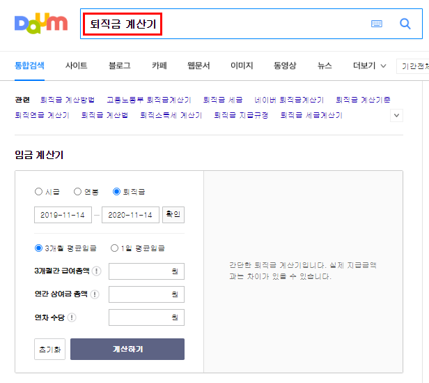 다음 검색창에 퇴직금 계산기를 검색합니다