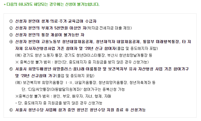 희망 두배 청년 통장 신청자격