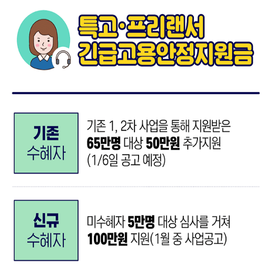 1차 재난지원금 추가 지원금 신청(50만원) 특고프리랜서 고용안정지원금 코로나19 긴급고용안정지원금 1차를 지원받은 특고/프리랜서에 대해 추가 지원 예정이며 신속한 지급을 위해 사전 신