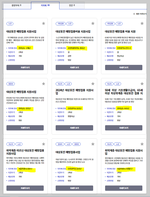 확인 후 해당지역에 자세히 보기를 클릭합니다.