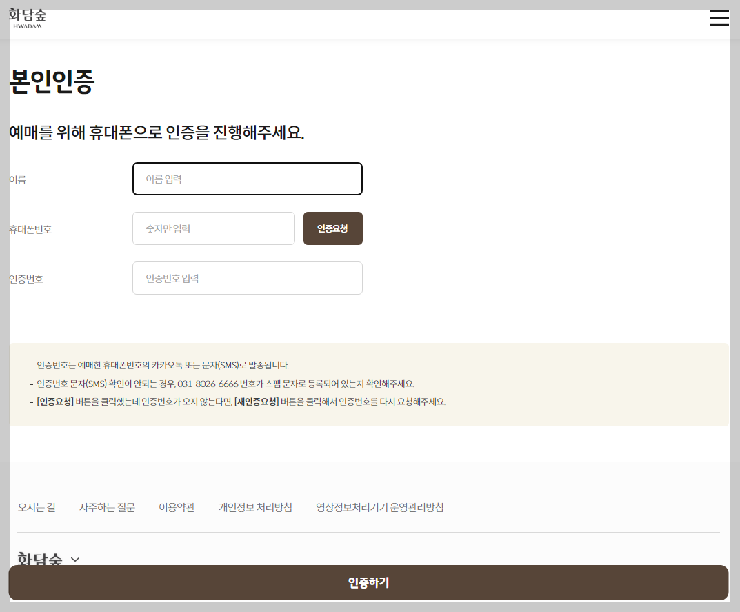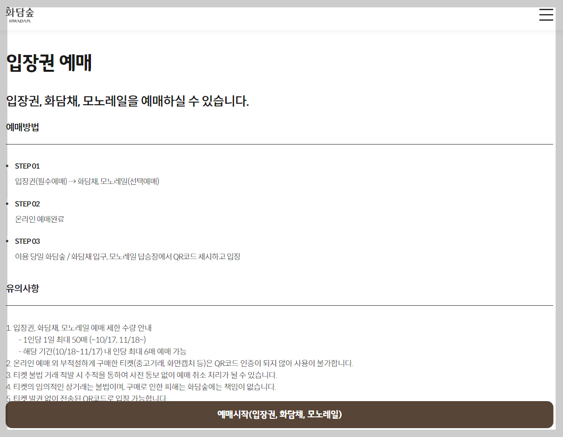 - 홈페이지 로그인: 화담숲 홈페이지에 로그인하여 내 예약 정보를 확인합니다.