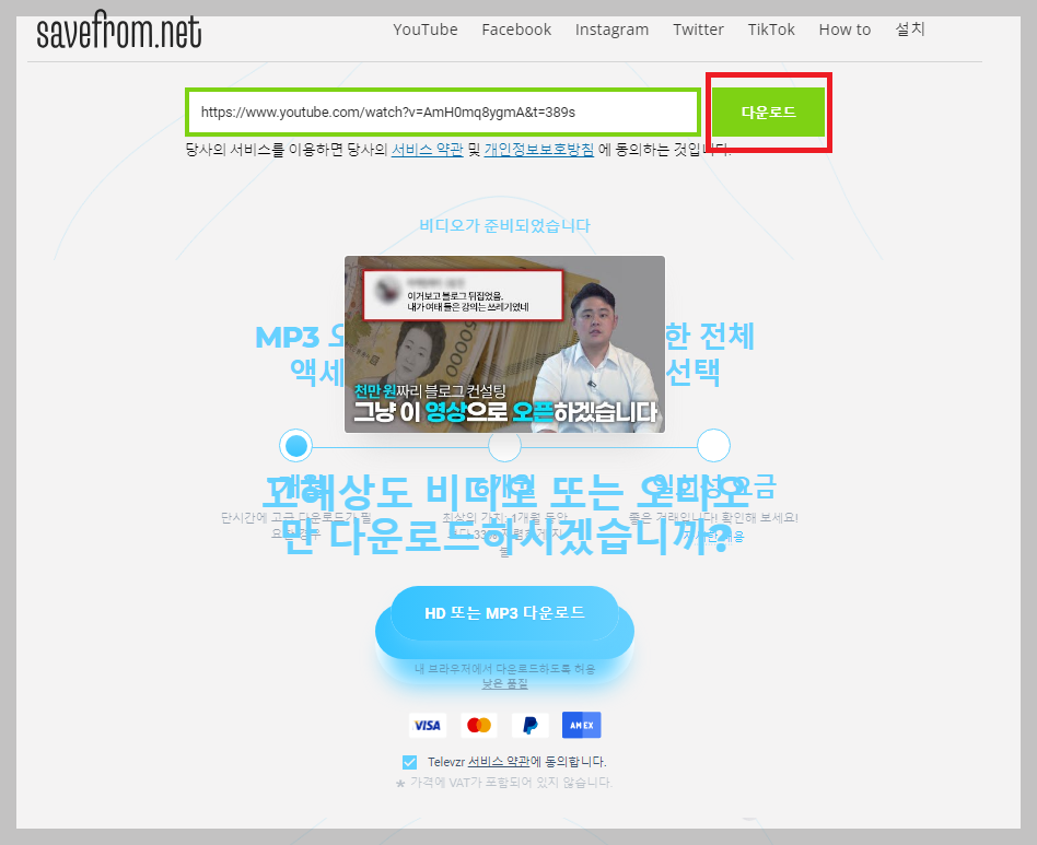 다운로드 하고 싶은 영상을 보시면 상단 url 주소창에 www.youtube.........