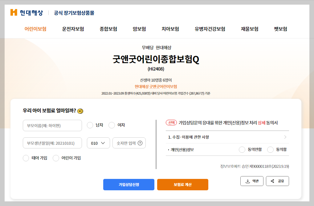 현대해상은 오랜 기간 동안 부모들이 신뢰하는 보험사로, 자녀를 위한 다양한 맞춤형 보험 상품을 제공합니다. 특히 현대해상의 ‘굿앤굿 어린이 보험’은 가성비가 좋고, 다양한 선택형 보장 항목을 제공해 필요한 보장만 선택할 수 있습니다.