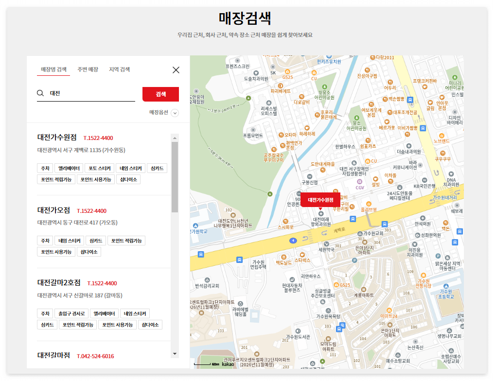 - 결과 목록 외에도 지도를 통해 매장 위치를 확인할 수 있어 더욱 편리합니다. 이는 매장 간 이동 동선을 최적화하는 데 도움이 됩니다.