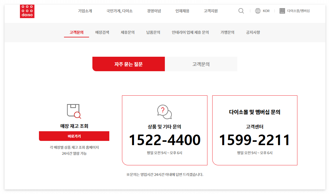 다이소 웹사이트를 통한 재고 확인