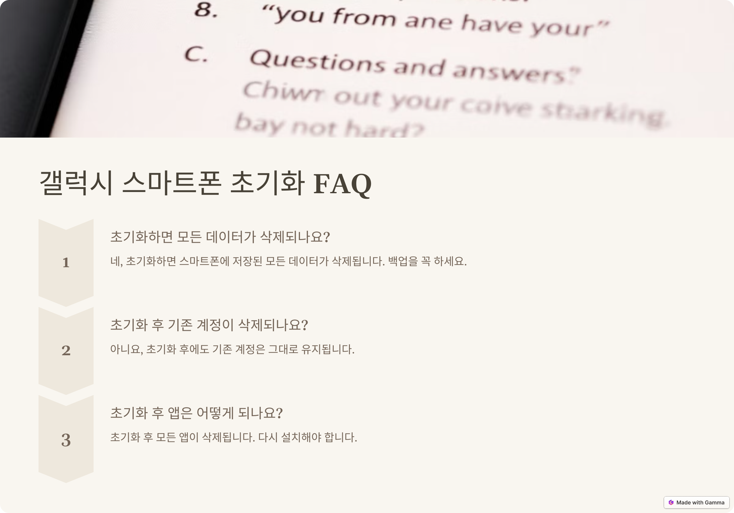 갤럭시 스마트폰 초기화는 데이터를 삭제하고 기기를 초기 상태로 되돌리는 중요한 과정입니다. 초기화와 관련된 궁금증을 해결하기 위해 자주 묻는 질문과 답변을 정리했습니다.