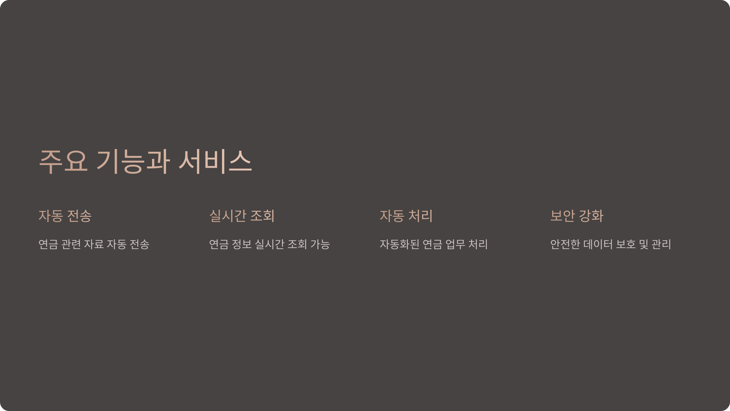 - 온라인 기반의 편리성: 복잡한 서류 작업 없이 모든 국민연금 업무를 인터넷 환경에서 처리할 수 있습니다.
