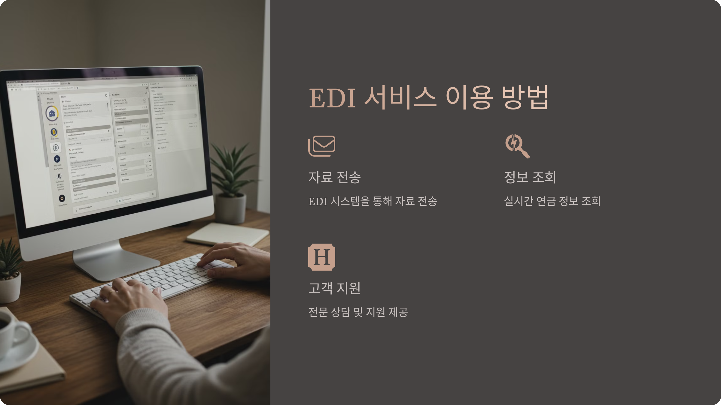 이처럼 EDI 서비스는 다양한 업종과 규모의 사업장에서 국민연금 업무를 간소화하고 최적화하는 데 유용합니다.