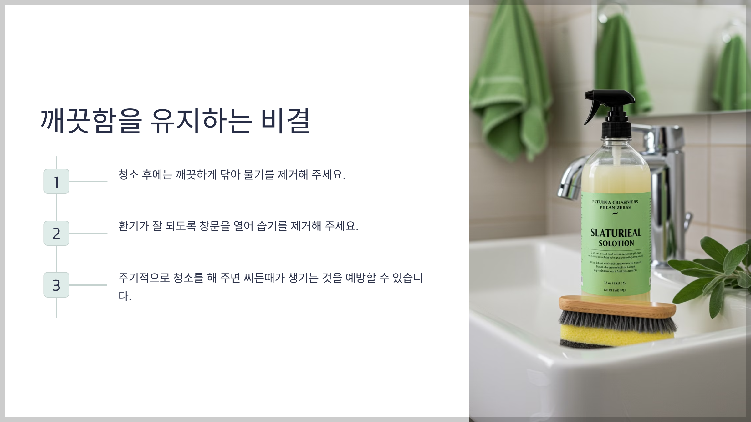 이 과정을 정기적으로 반복하면 물때와 곰팡이를 쉽게 예방할 수 있어요. 특히, 샤워 후 욕실을 환기시키는 것도 중요하답니다!