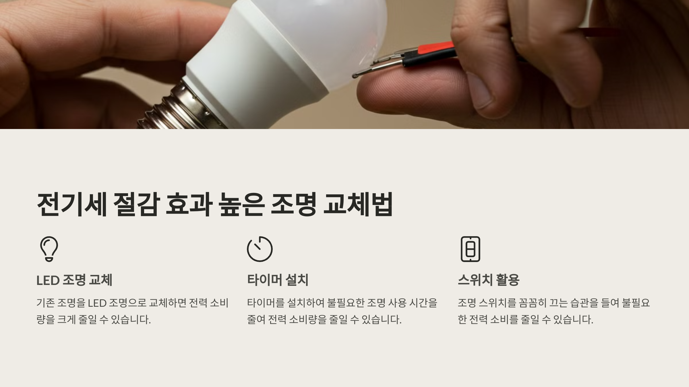 | 형광등 → LED 전구 교체 | 최대 50% 절감 |