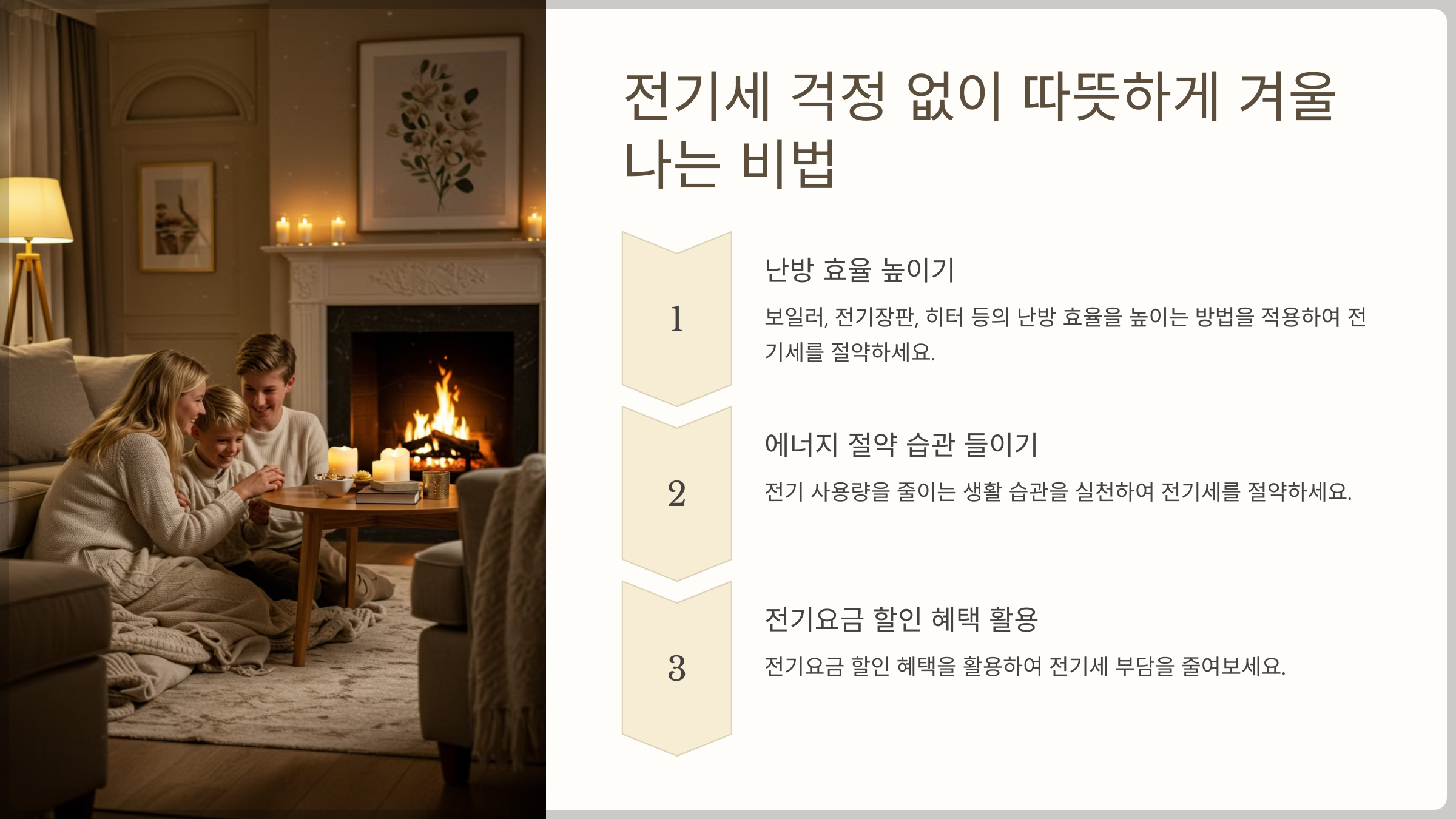 이제 전기세 걱정 없이 따뜻한 겨울을 보낼 준비가 됐어요! 😊