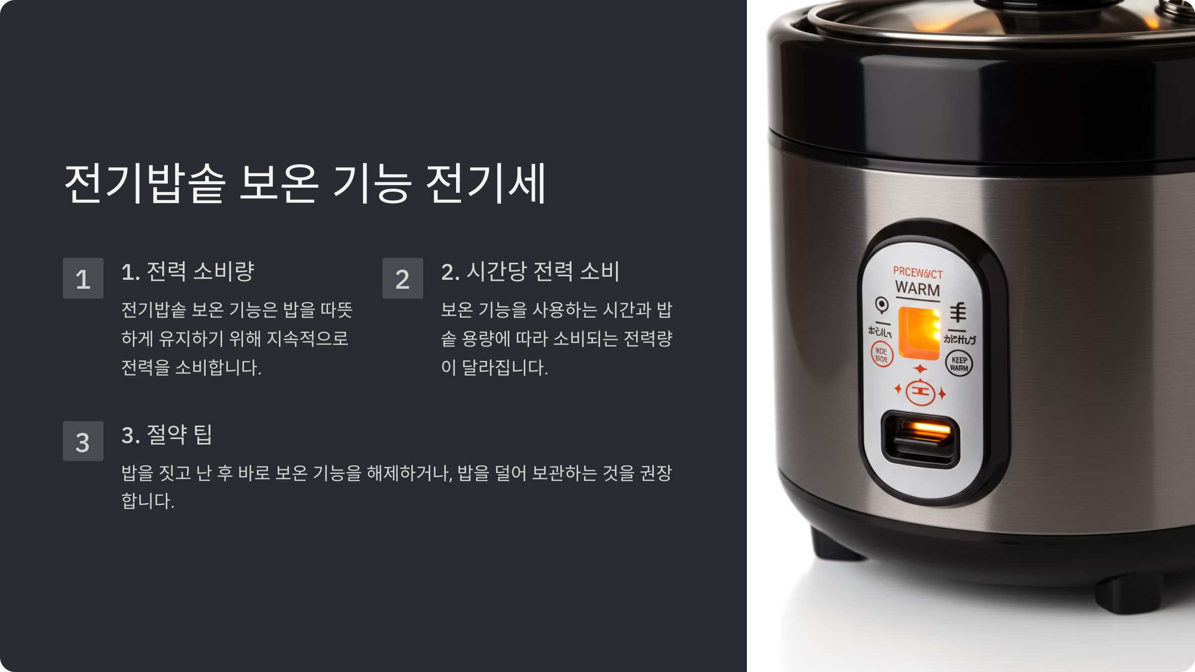 ✅ **보온 시간 최소화하기!** 보온 시간이 3시간을 넘으면 전력 소비가 급격히 증가해요. 짧게 보온하고 바로 소비하는 습관이 필요해요.