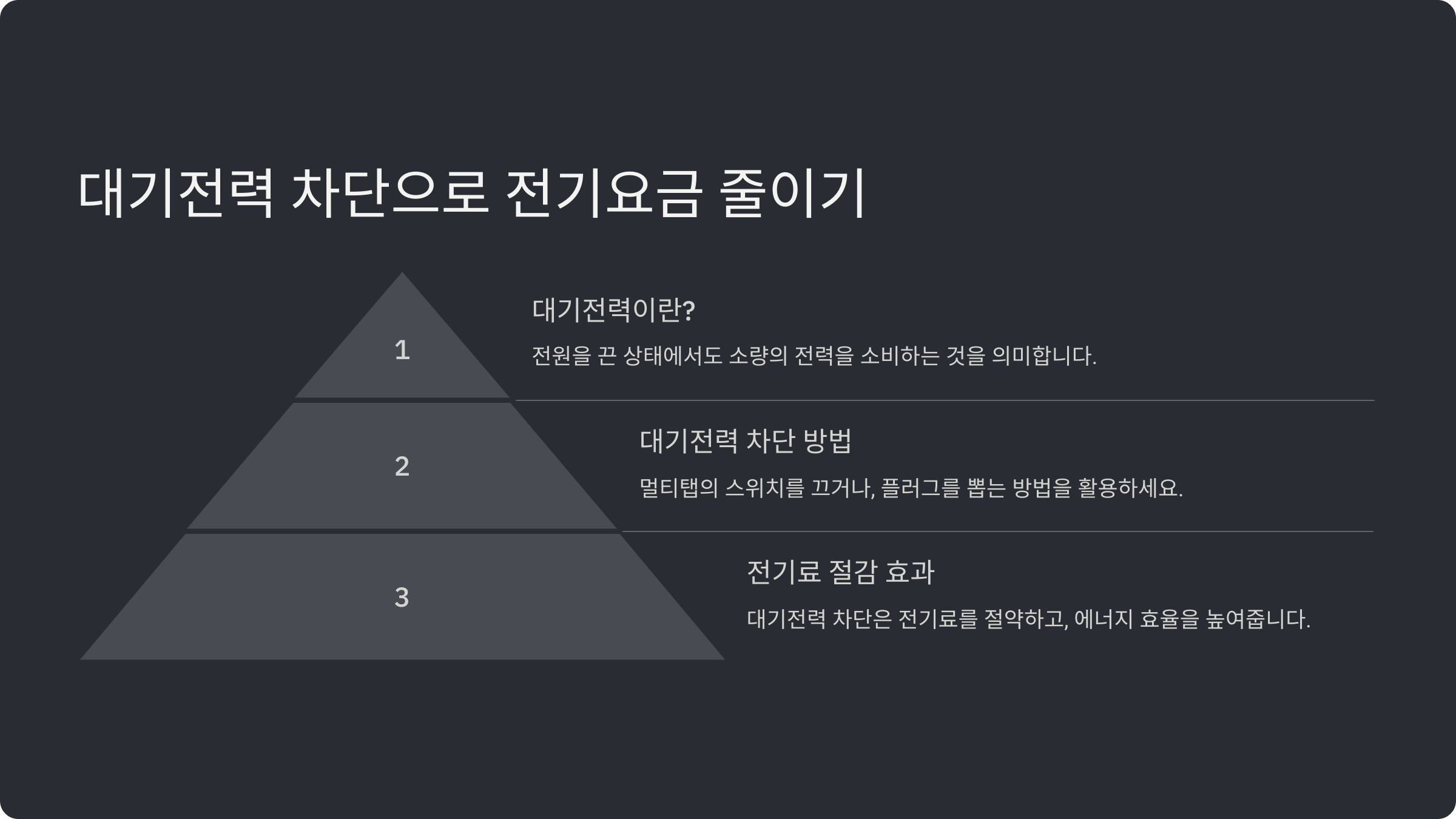 또한, 대기전력이라는 것이 생각보다 전기 요금에 큰 영향을 준다는 사실, 알고 계셨나요? 사용하지 않는 가전제품도 전원을 연결해 두면 전기가 계속 소비되는데, 이를 줄이는 방법도 함께 알아볼 거예요.