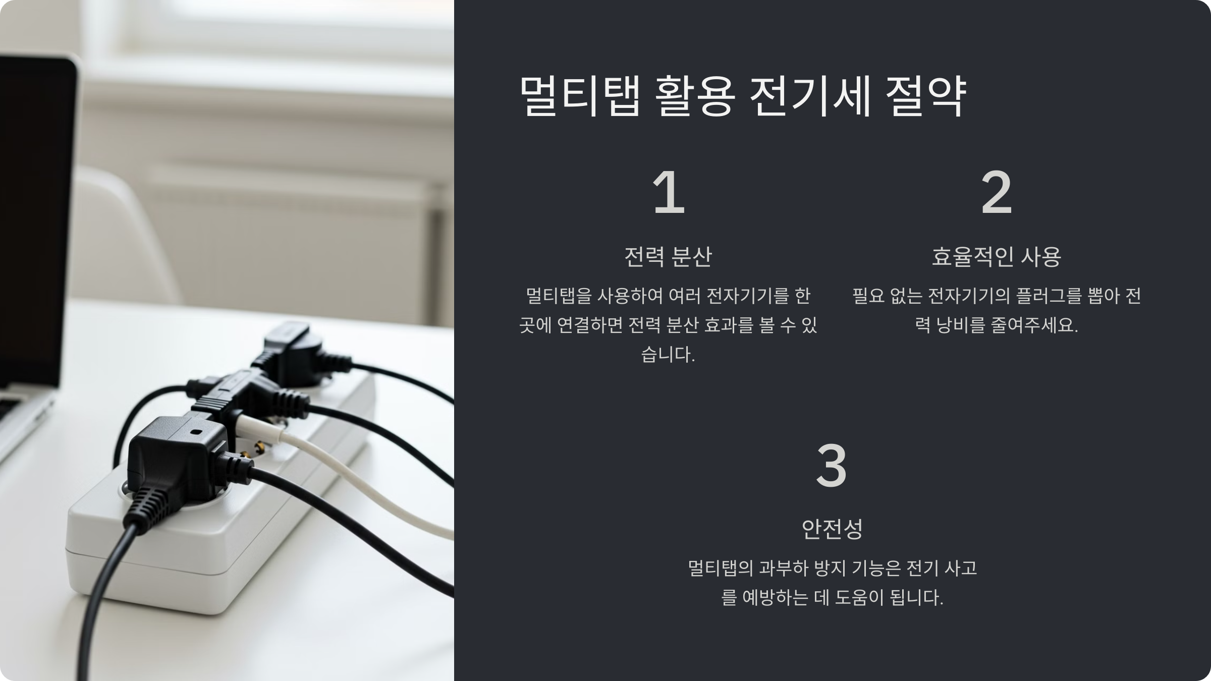 멀티탭은 단순한 전기 연결 도구가 아니에요. 제대로 활용하면 전기세를 절약하는 강력한 도구가 될 수 있답니다! 💡