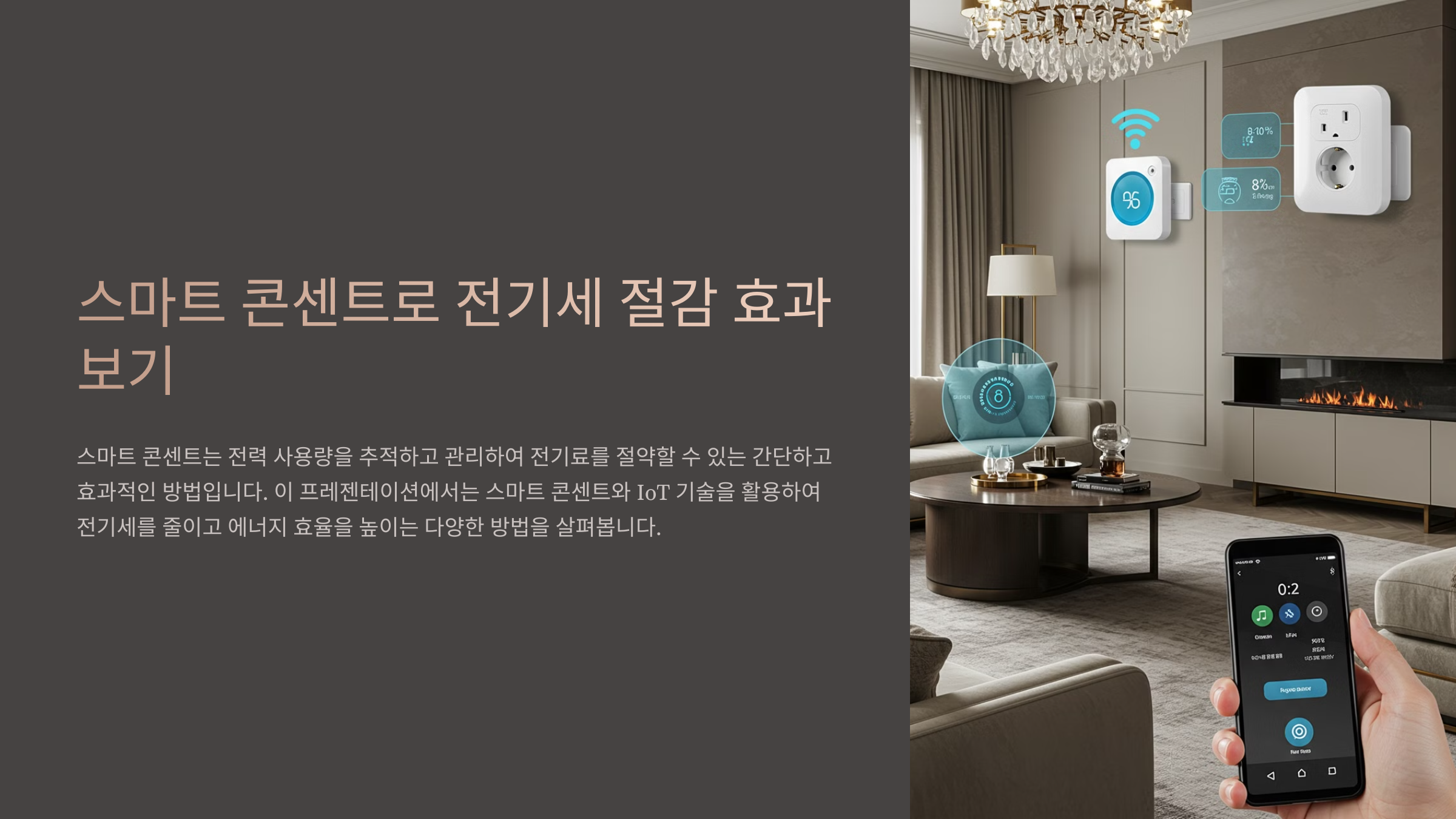 | 스마트 콘센트 | 대기전력 자동 차단 & 원격 제어 | 전기세 10~15% 절감 |