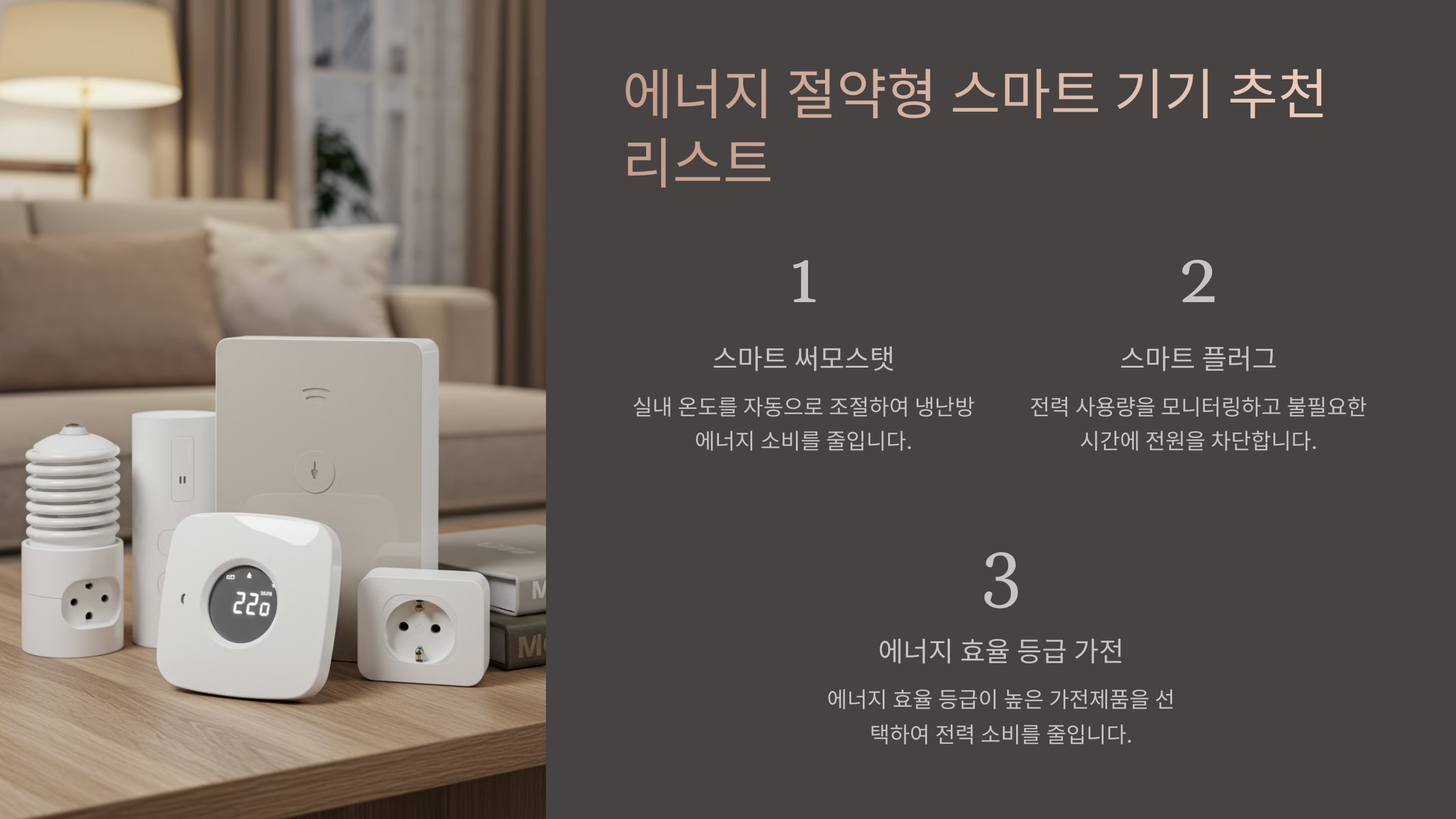 그럼, 에너지 절약에 효과적인 스마트 기기들을 추천해 드릴게요.