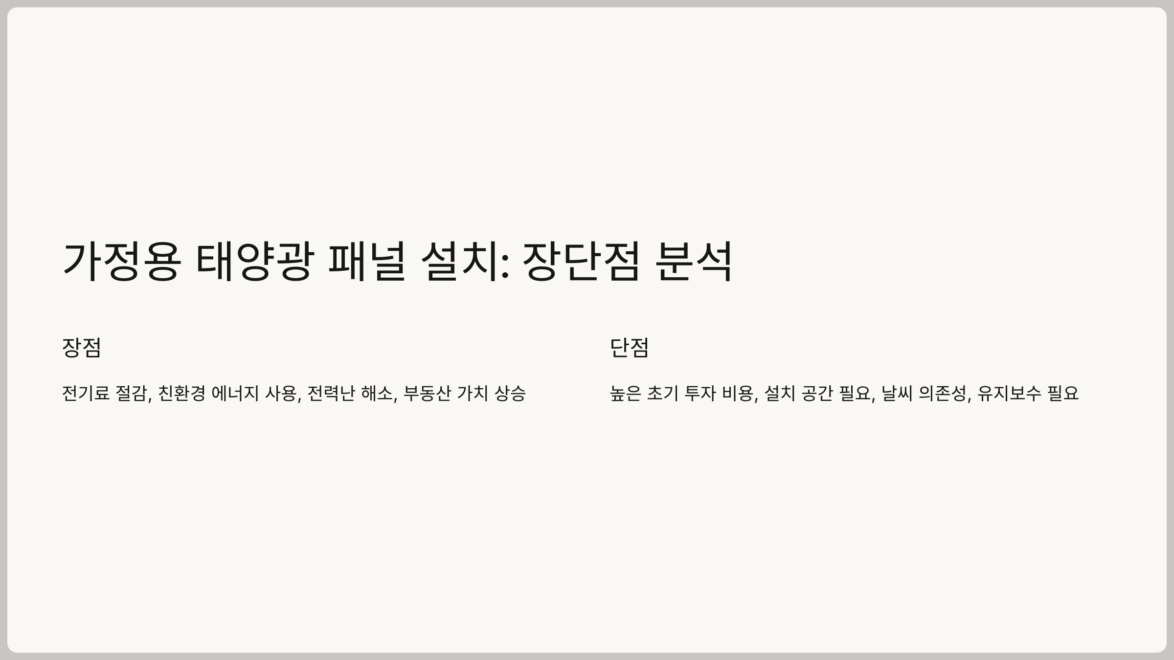 다음으로, 가정용 태양광 패널 설치의 장점과 단점을 자세히 살펴볼게요.