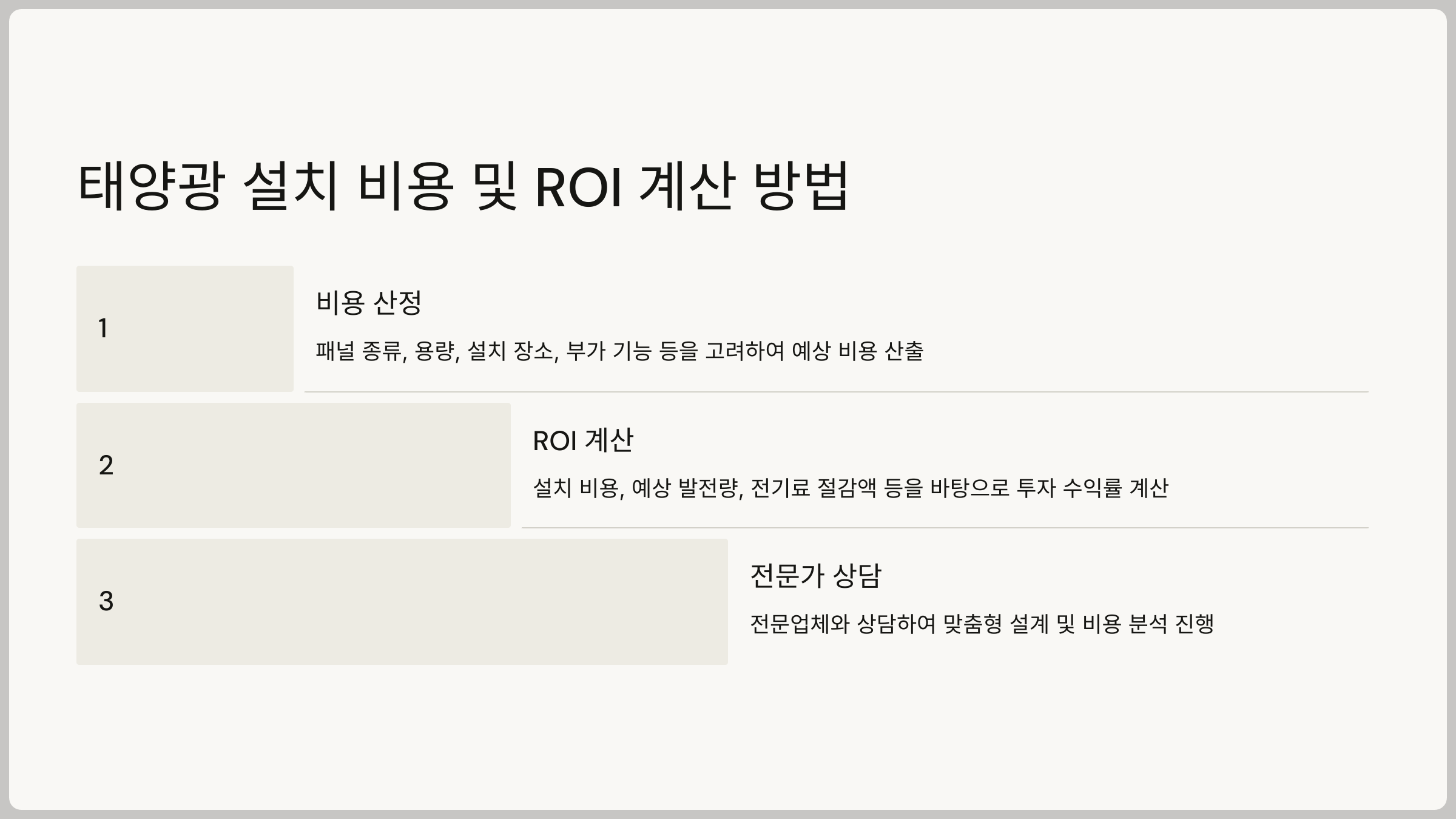 이제 태양광 패널 설치 비용과 투자 수익률(ROI)을 계산하는 방법을 알아볼게요.