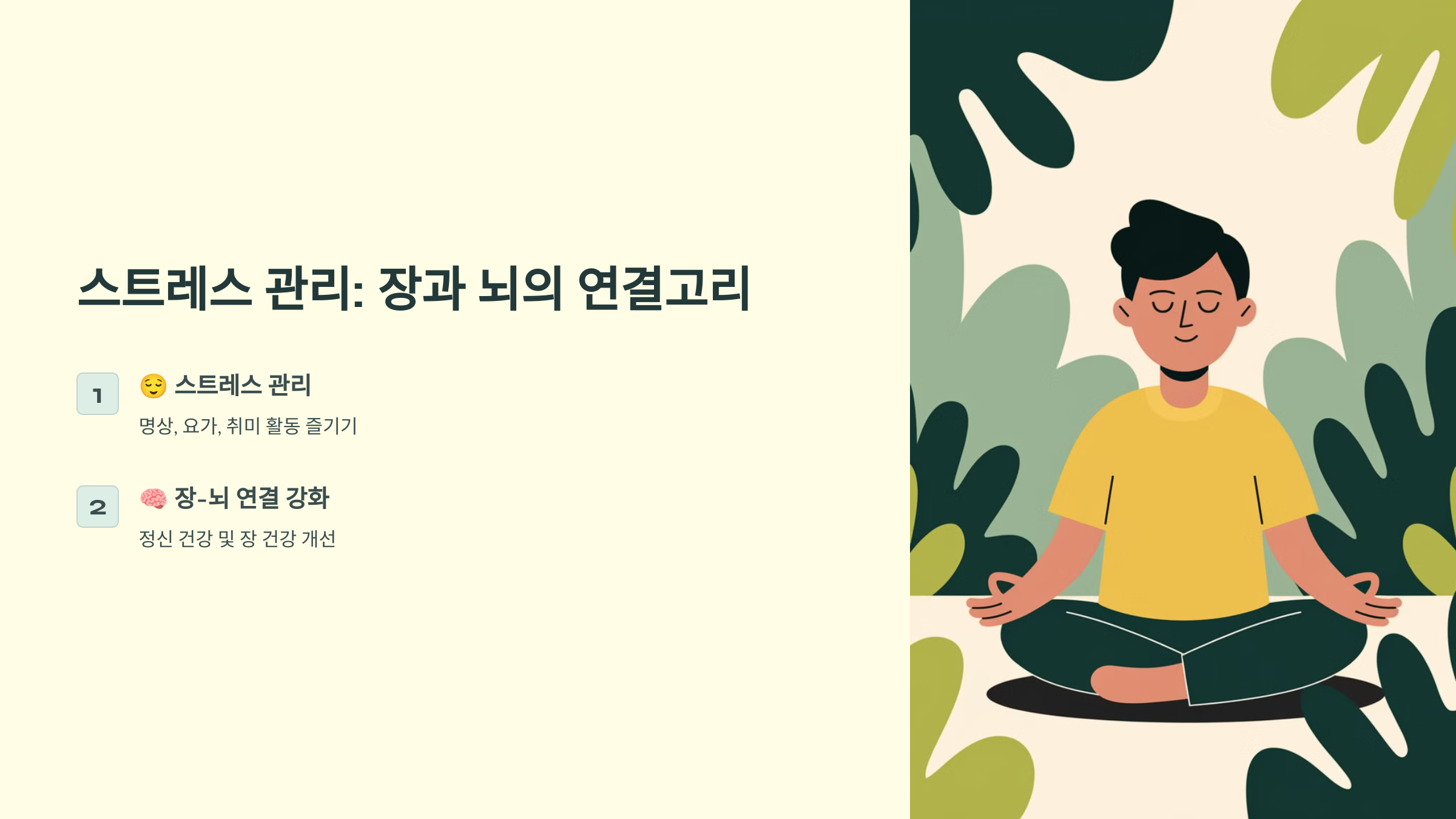 💡 스트레스를 줄이면 장 건강뿐만 아니라 전반적인 신체 건강도 개선될 수 있어요! 😉