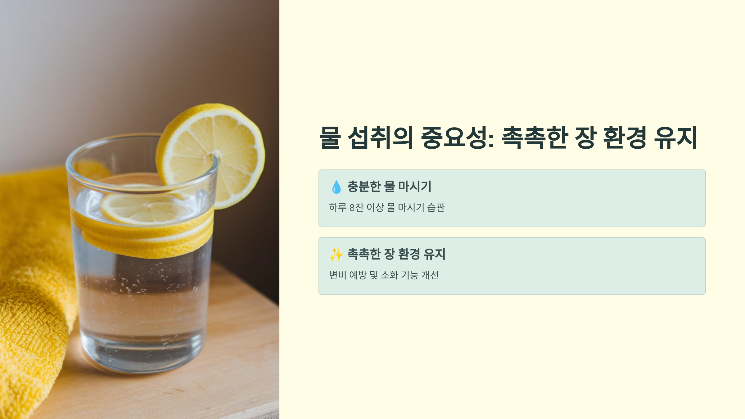 💡 물을 충분히 마시면 변비 예방뿐만 아니라 장 기능 개선 효과까지 얻을 수 있어요! 😉