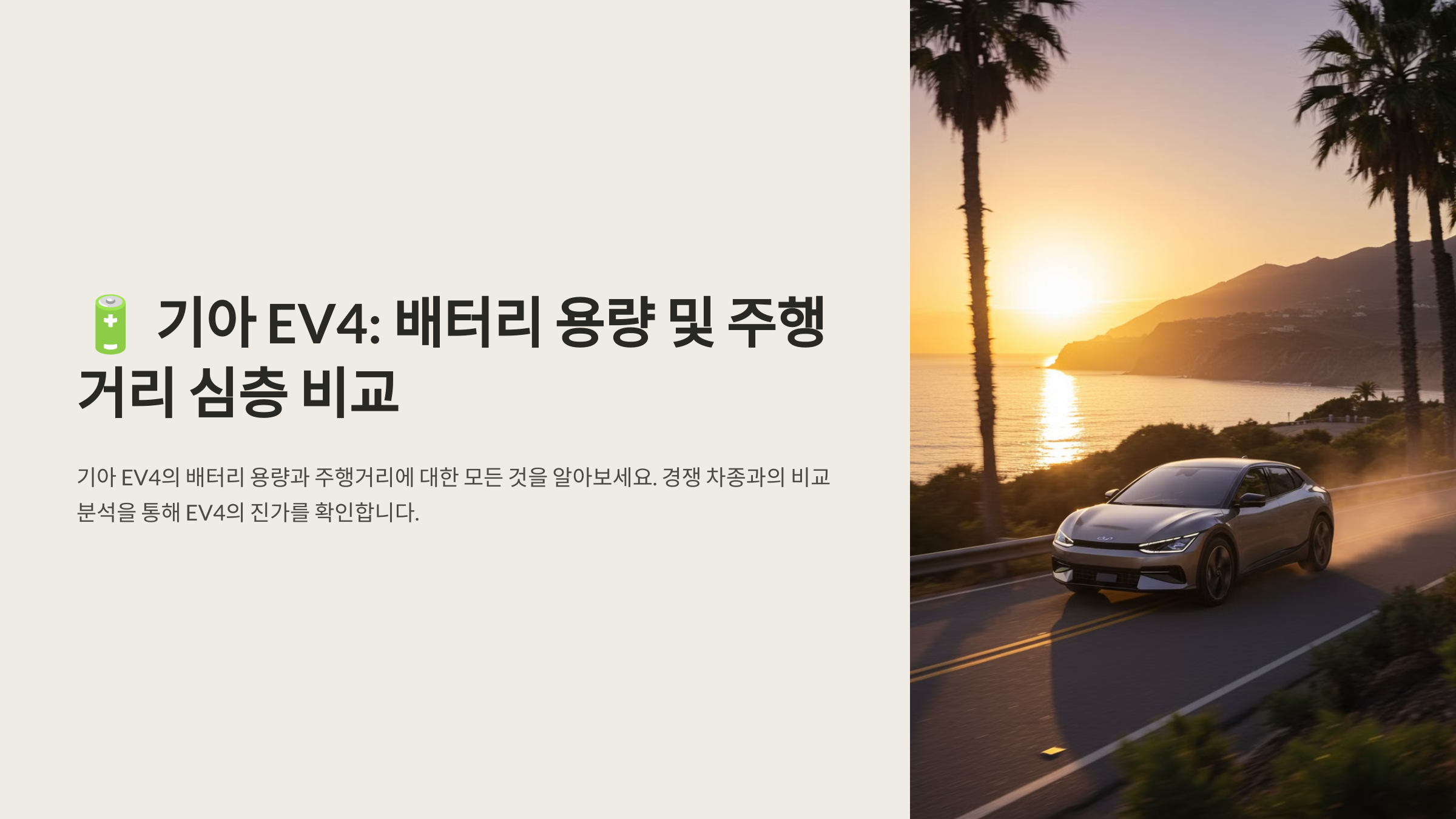 이번 글에서는 **배터리 성능, 주행거리, 가성비, 경쟁 모델과의 비교** 등을 통해 Kia EV4를 구매해야 하는 이유를 살펴볼게요. 🚗💨