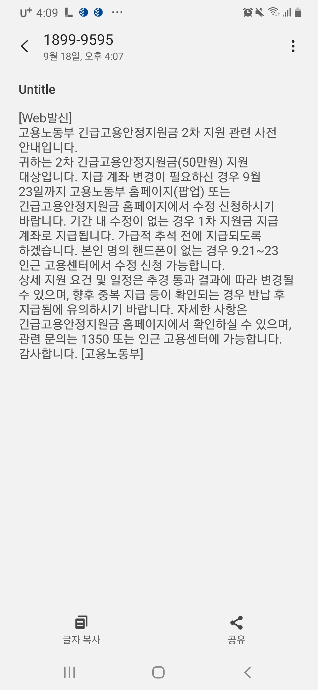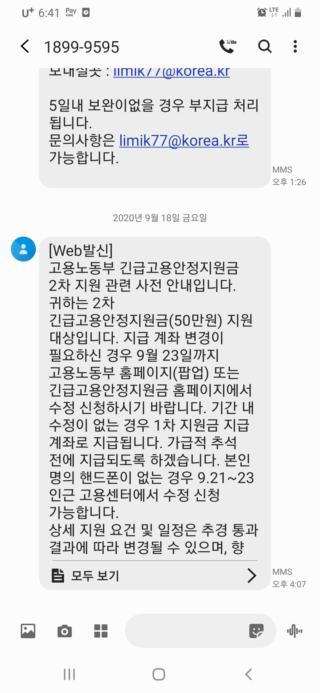이렇게 문자가 온걸 보니 1차 재난지원금