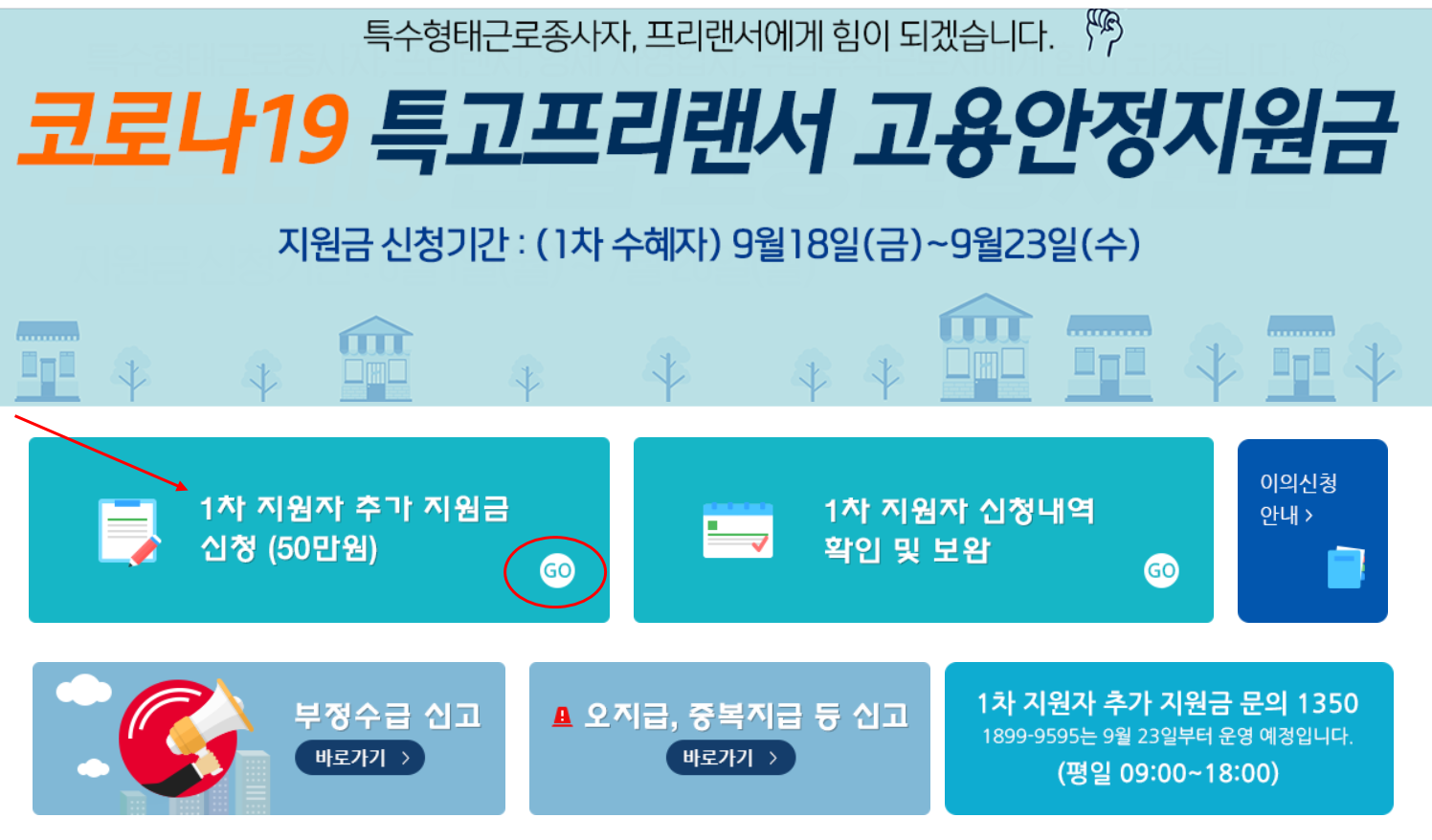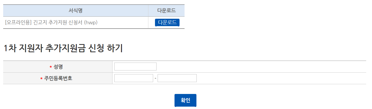 1차 지원자 추가지원금 신청하기에 작성하시고