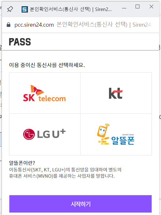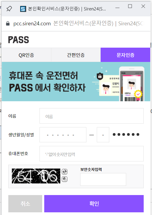 개인명의 휴대폰으로 본인확인을 해야합니다