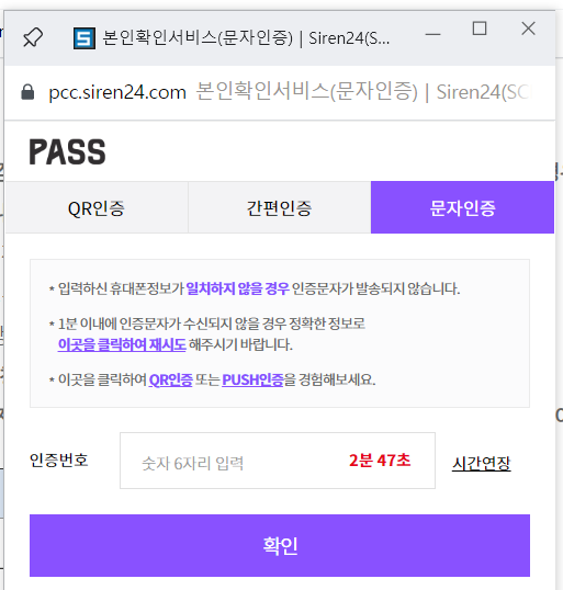 저는 문자인증으로 했어요
