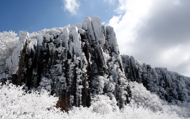 정교하게 깎아낸 돌기둥들을 세워놓은 듯한 입석대(立石臺),